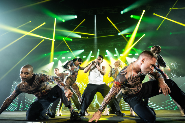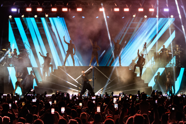 Müzikseverlerin yoğun ilgi gösterdiği konserde, sahnede sanatçıya 7 kişilik dans grubu ve 9 müzisyen eşlik etti.