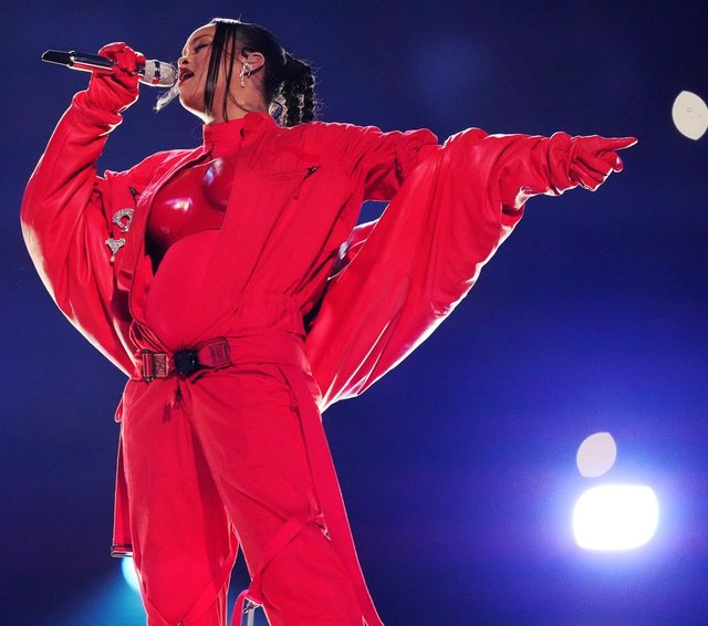 İlk çocuğunu dokuz ay önce dünyaya getiren Rihanna, Arizona'daki State Farm Stadyumu'ndaki 'Super Bowl' şovunda belirginleşen karnını sergiledi. Şarkıcı, hamilelik haberini sahne performansının bitmesinden kısa süre sonra doğruladı.