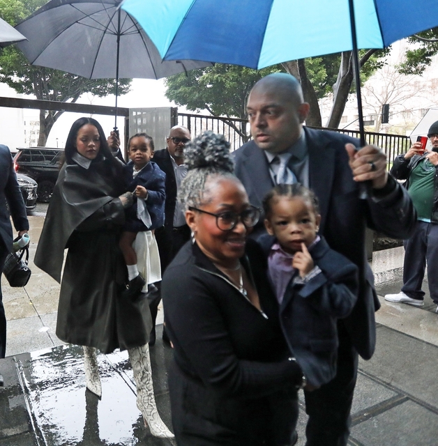 Yağmurlu havada çocukları RZA (3) ve Riot (2) ile adliye binasına giden Rihanna, kendisine mikrofon uzatan basın mensuplarına açıklama yapmadı. Bir çocuğunu kendisi kucağında taşırken, diğer çocuğu bakıcısının kucağında mahkeme salonuna girdi.