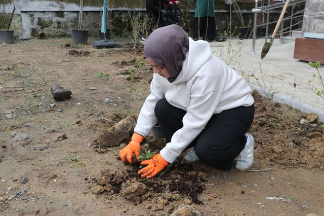 Katılımcılar, çeşitli türlerdeki fidanları toprakla buluşturdu.