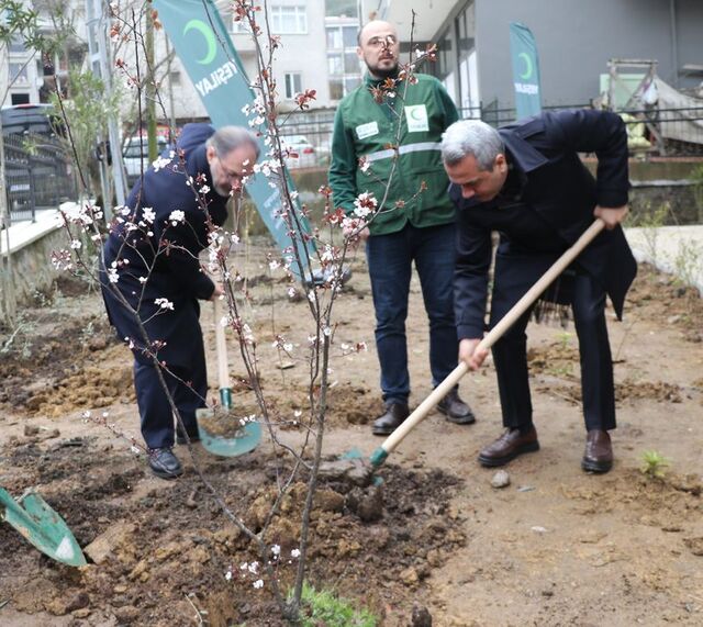 Rize'de, Yeşilay Haftası etkinlikleri çerçevesinde fidan dikim töreni gerçekleştirildi. Katılımcılar, çeşitli türlerdeki fidanları toprakla buluşturdu