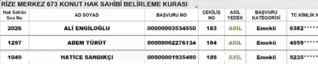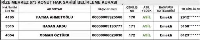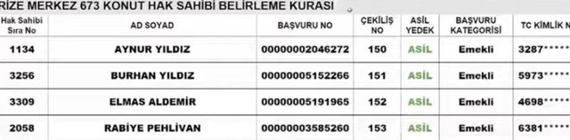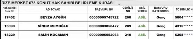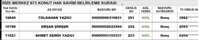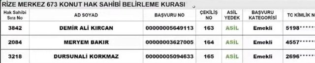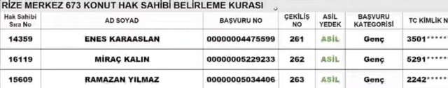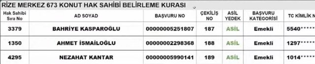 Rize TOKİ kura sonuçları ve isim listesi sorgulama ekranı