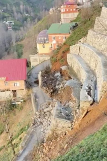 Rize'nin Ardeşen ilçesi Bayırcık köyünde yamaçta yapımı süren istinat duvarı heyelan nedeniyle çöktü. Yamaçtan akan toprak ve irili ufaklı kaya parçaları köy yolunu ulaşıma kapattı. Heyelan anı cep telefonu kamerasına yansıdı.