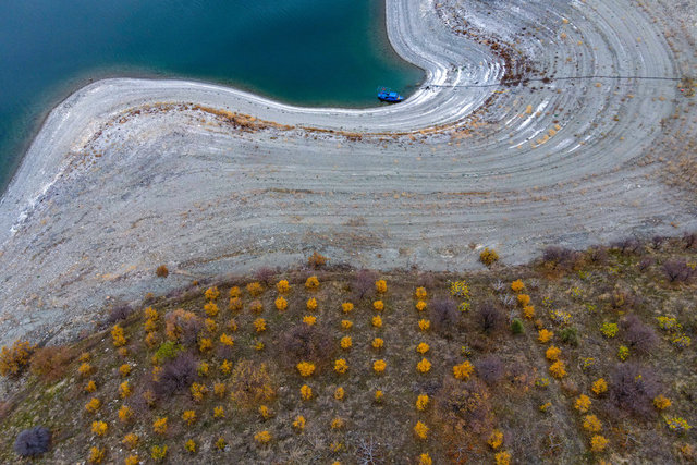 Tunceli'nin Pertek ilçesinde yaşayan Ziya Abay'ın yıllar önce binlerce fidan diktiği Keban Baraj Gölü'ndeki adası, sonbahar renkleriyle ayrı bir güzelliğe kavuştu