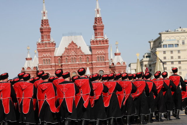 Rusya Savunma Bakanlığı açıklamasında "1941-1945 Büyük Vatanseverlik Savaşı Zaferi'nin 77. yıldönümü münasebetiyle düzenlenen askeri geçit töreninin kostümlü provası bugün Moskova'nın Kızıl Meydanı'nda yapıldı" ifadelerini kullandı.