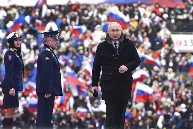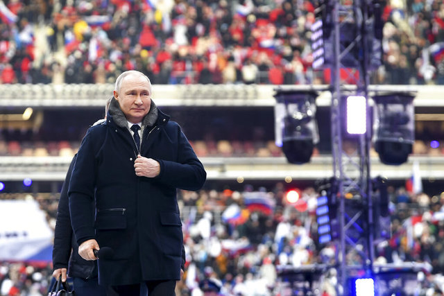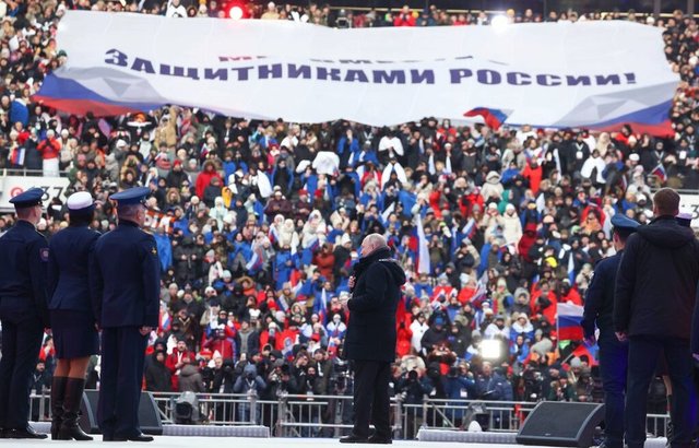 Rusya Devlet Başkanı Vladimir Putin Moskova'da, savaşın 1. yıl dönümünün hemen öncesinde düzenlenen bir mitingde on binlerce kişiyi askerlere destek için 'Rusya' sloganları atmaya çağırdı ve Ukrayna'da savaşan Rus askerlerini selamladı.