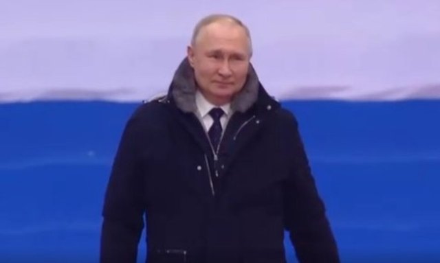 Moskova'da 81 bin kişi kapasiteli Luzhniki Stadyumu'nda on binlerce kişi Putin'e destek amacıyla Rus bayrakları salladı ve marşlarını söyledi.