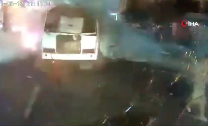 O anlar duraktaki diğer otobüsün güvenlik kamerasına yansırken, büyük panik yaşandığı görüldü.