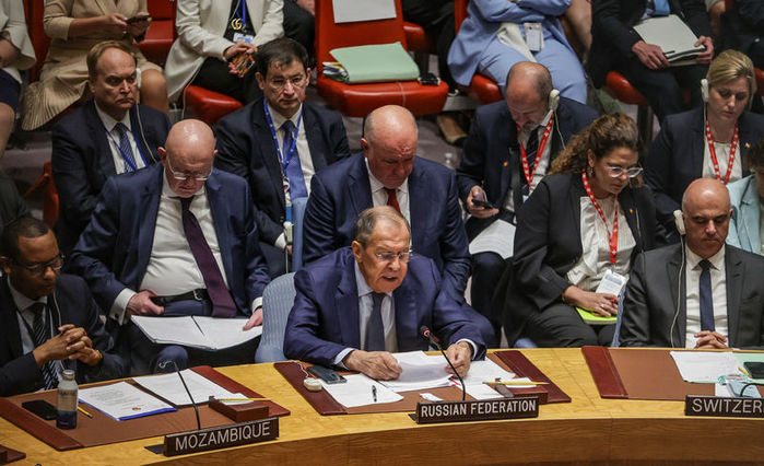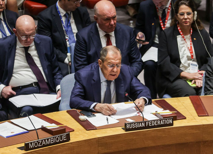 Ukrayna Devlet Başkanı Volodomir Zelenskiy'nin konuşmasında salonda bulunmayan ve Zelenskiy ayrıldıktan sonra salona gelerek konuşan Lavrov, NATO'yu yıllarca Moskova'yı dinlememekle suçladı.
