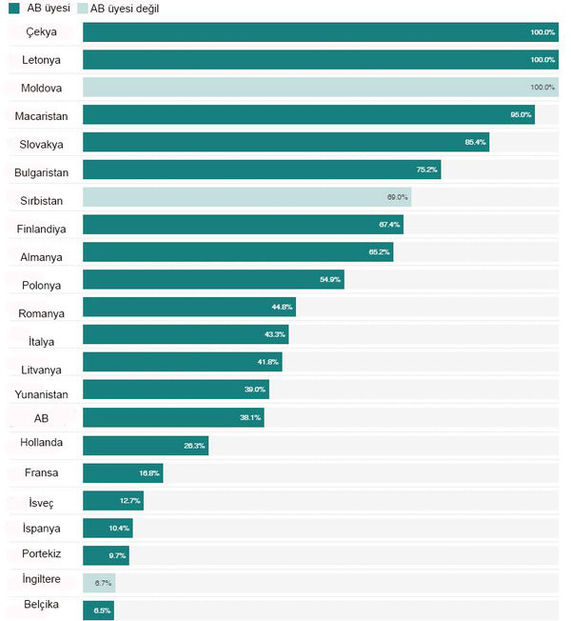 En güncel verilere göre 27 üyeli Avrupa Birliği'nin kullandığı doğalgazın yüzde 38.1'i Rusya'dan geliyor. Çekya, Letonya gibi AB üyesi ülkelerde bu oran yüzde 100'e çıkıyor. Rus gazının Almanya'nın tüketimindeki payı ise yüzde 65.