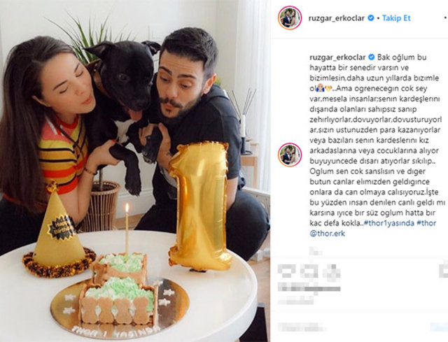 Oyuncu, bir takipçisinin, “Cins bir tür yerine, sokak köpeği sahiplenseydiniz” sözlerine, “Onun hayatını kurtardık. Halen kalçasında diş ve iğne izleri var” karşılığını verdi.
