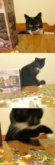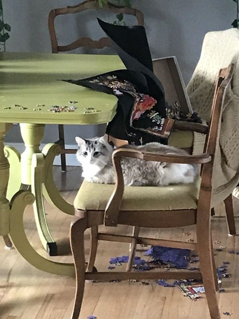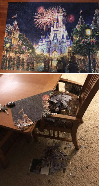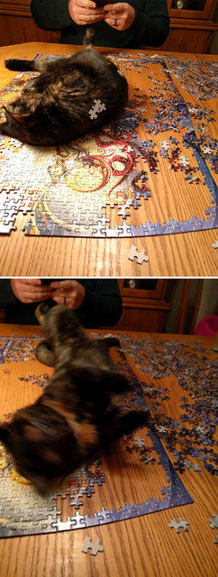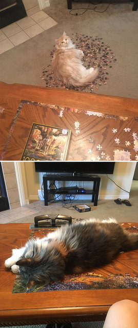Koronavirüs nedeniyle milyonlarca kişinin kendisini karantinaya aldığı şu günlerde yapboz gibi konsantrasyonu artıran aktiviteler ilgi görmeye başladı. Ancak evde bir kedi varsa yapboz bitirebilmek pek de kolay değil. İşte saatlerce süren emeği tek patiyle bozan sevimli kediler