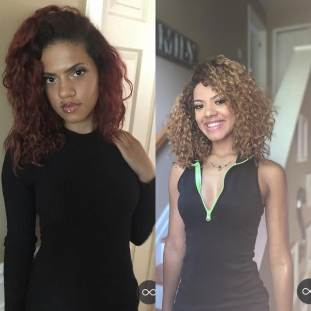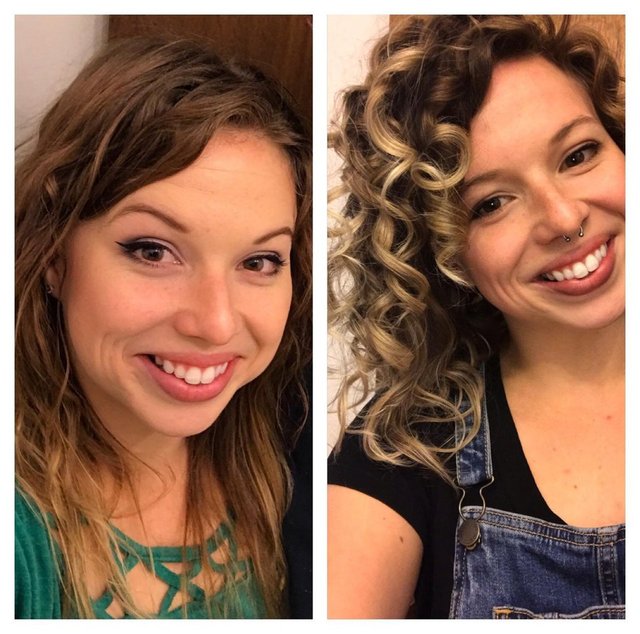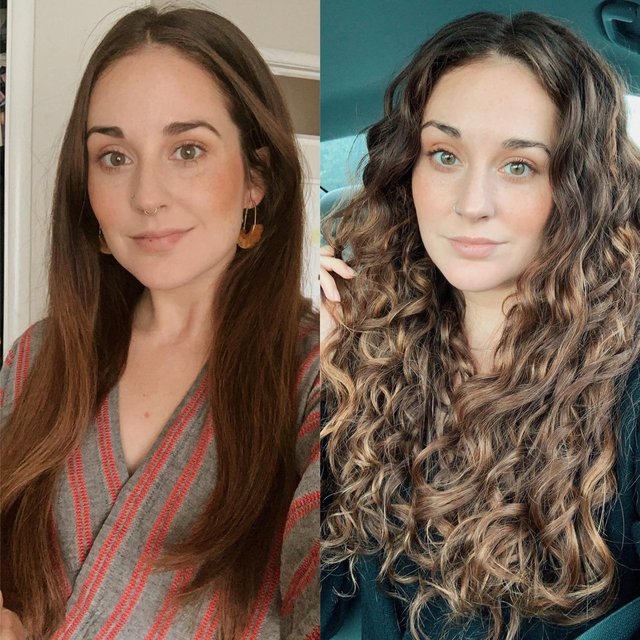 "Hayatımın büyük bölümünde saçlarımı soldaki fotoğraftaki gibi kullandım. Geçenlerde beni içimdeki kıvırcık kızı kucaklamaya teşvik eden biriyle tanıştım!"