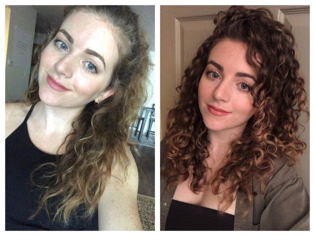 "Kıvırcık saçta dönüşüm! İki yıl önce ve şimdi."
