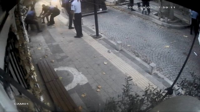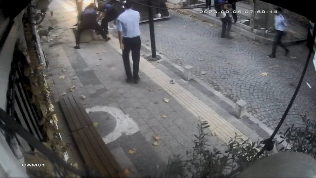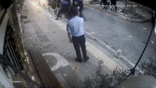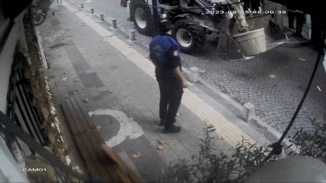Güvenlik kamerasına yansıyan görüntülerde, Sarıyer Belediyesi zabıta ekiplerinin Emirgan Mektebi Sokak'ta bulunan kafenin önüne geldiği görülüyor. Bu sırada bir kepçenin de kafenin önüne yanaştığı görülüyor. Zeytin ağaçlarının bağlı olduğu zincirleri kesmek için getirilen metal kesme makasını eline alan görevlinin, elindeki makası güvenlik kamerasına göstererek kesme işareti yaptıktan sonra zincirleri kestiği görülüyor. Daha sonra zincirleri kesilen zeytin ağaçlarının kepçeye konularak götürüldüğü görülüyor.