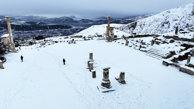 Arda Coşkun ise Sagalassos'u daha önce de gezdiğini ancak kar altında ilk kez gördüğünü, antik kentte karla eşsiz manzaralar oluştuğunu belirtti.
