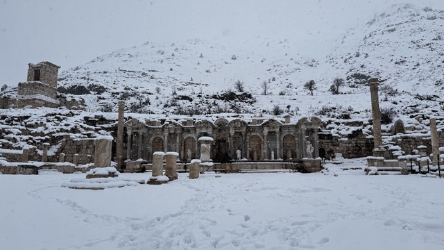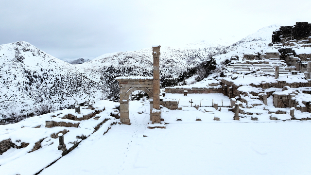 Sagalassos Antik Kenti kar yağışıyla beyaza büründü