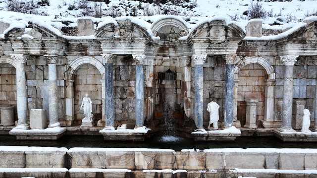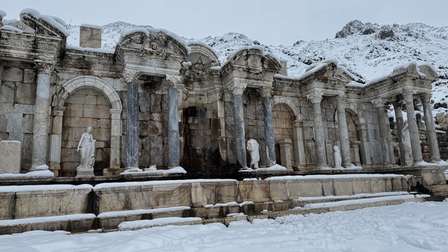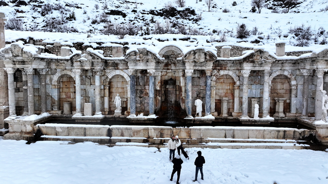 "Bugünlerde beyaz örtüye bürünen kent, temiz havası, görkemli yapıları ve muhteşem manzarasıyla yılın en özel günlerini yaşıyor. Sagalassos, şu an bilinen 7 çeşme yapısıyla güzel Anadolu'nun su şehridir. Bu çeşmelerin ikisi restore edilerek antik dönemdeki gibi suyla buluşturuldu. Hadrian Çeşmesi'ni de ayağa kaldırılmak için Kültür ve Turizm Bakanlığınca 2024 yılında restorasyon çalışması başlatıldı. Bu çalışmalar, antik kente yılın ilk karı düşene kadar yoğun şekilde sürdürüldü."