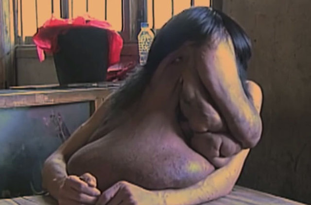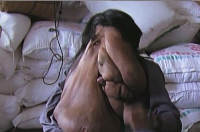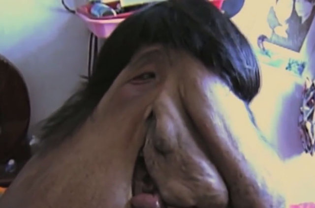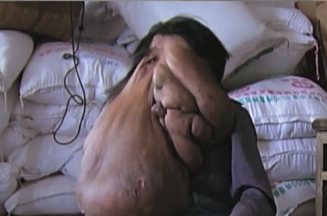 Dört yaşında Nörofibromatozis (NF- değişik sinirler boyunca tümörlerin büyümesine sebep olan ve ek olarak kemik ve deri gibi sinir harici dokuların gelişimini etkileyen genetik hastalıklar) hastalığına yakalanan 40 yaşındaki Huang Chuncai'nin yüzünde 15 kilo tümör var.