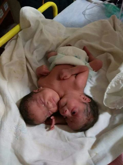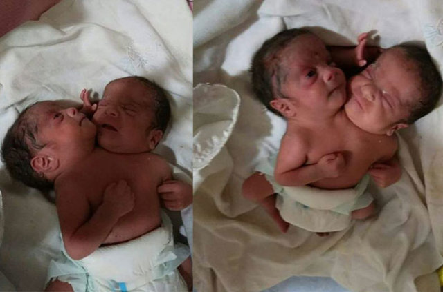 Üçüncü çocuğuna hamile olan Rağde El-Delli'nin (28) sancıları başlayınca eşi tarafından hastaneye kaldırıldı. Ancak çiftin sezaryenle çift başlı bebekleri dünyaya geldi.