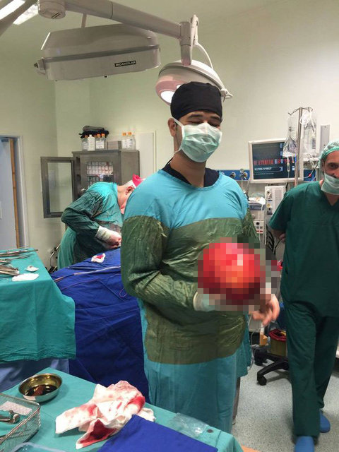 Kitle, patolojiye gönderilirken operasyonla ilgili açıklama yapan Genel Cerrahi Uzmanı Op.Dr. Salih Zeki Pişkin, hastanın genel durumunun iyi olduğunu belirterek, "Yıllarca ihmal edilmiş, yıllarca boynunda gereksiz yere taşınmış, hiçbir zamanda şikayet edilmemiş bir vaka karşısında bizde şaşırdık.