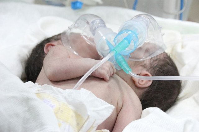 Suriye'nin İdlib kentinde yaşayan 28 yaşındaki bir kadın, üçüncü bebeğini doğurmak için gittiği hastanede sezaryenle siyam ikizi dünyaya getirdi.