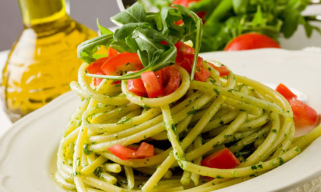 Domates soslu fesleğenli makarna 125 gr/ bir tabak mantı üstüne sadece domates sos ilave edilecek, yağ konulmayacak/7 kaşık bulgur pilavı/7 kaşık kahverengi pirinç ve yanında 1 kase yoğurt + salata