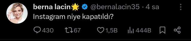 Berna Laçin, "Instagram niye kapatıldı?" şeklinde tivit attı.