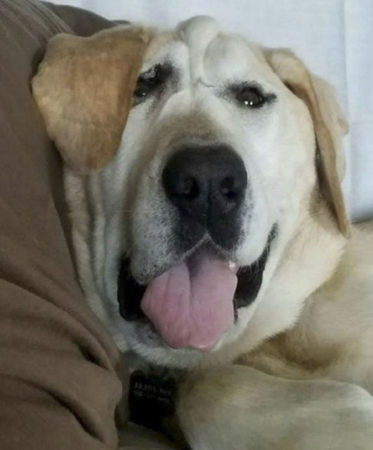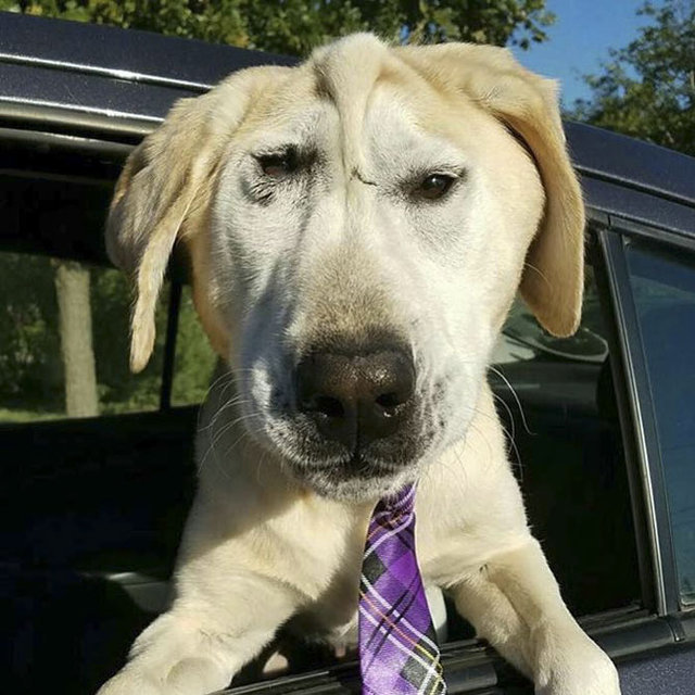 Beaux Tox adındaki Labrador Retriever anne karnında kardeşleri tarafından sıkıştırıldığı için yüzünde bir kusurla doğdu.