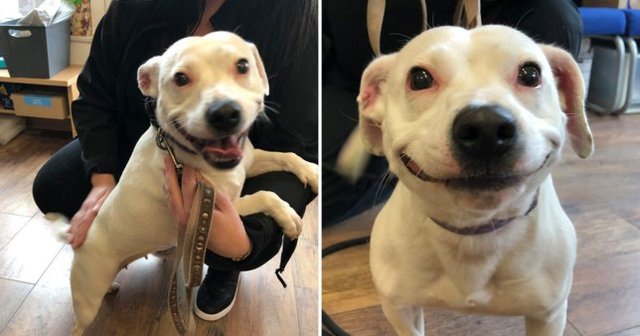 Hayvan kurtarma barınağına getirilen sevimli köpek, gülümsemesiyle kendisine yeni bir yuva buldu.