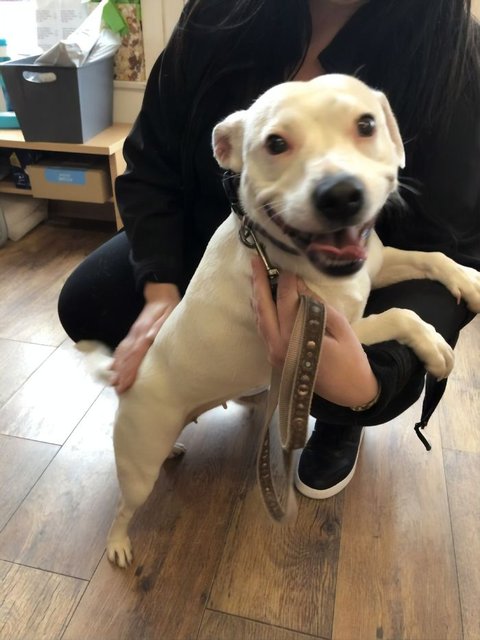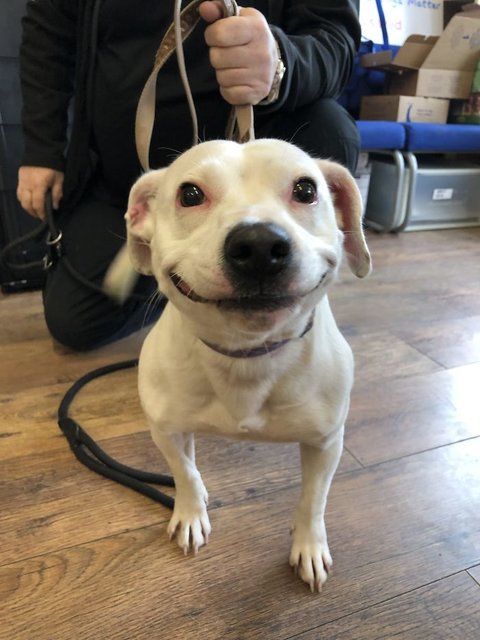 İngiltere'nin Londra kentinde sokağa terk edilen Staffordshire Bull Terrier cinsi Sybil, inanılmaz gülümsemesiyle kalpleri fethetti.