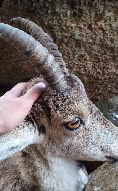 İspanya'nın Madrid kenti yakınlarındaki Sierra de Guadarrama dağlarının Pedriza bölgesinde yürüyüş yapan bir grup insan kayaların arasında sıkışan bir keçiye rastladı.