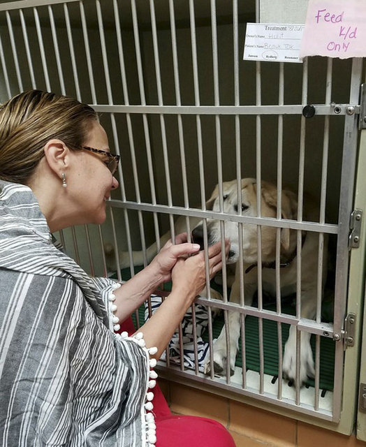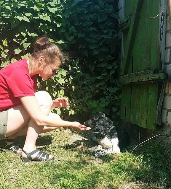 Audra Petraskiene, köpeğin boynundaki ağırlığı nazikçe çıkardıktan sonra zavallıyı eve götürdü. Sosyal medyadan köpeğin fotoğraflarını paylaşarak yardım istedi.