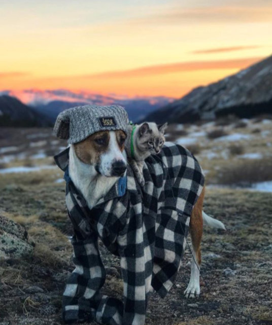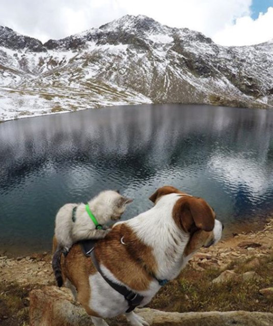Çiftin köpeği Henry ve kedisi Baloo, yalnızca sahipleriyle değil birbirleriyle de doğa yürüyüşleri yapmaya bayılıyorlar.