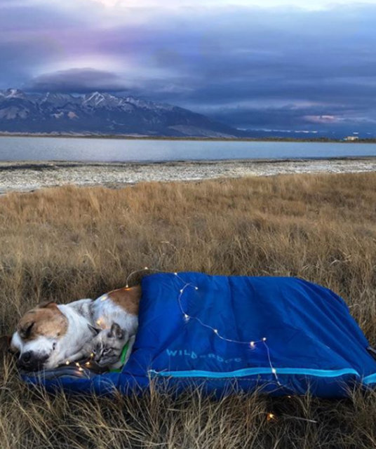 Doğa yürüyüşü yapmayı çok seven Amerikalı Cynthia Bennett ve sevgilisi, tam kendilerine göre gezmeyi seven bir kedi ve bir köpek buldular.