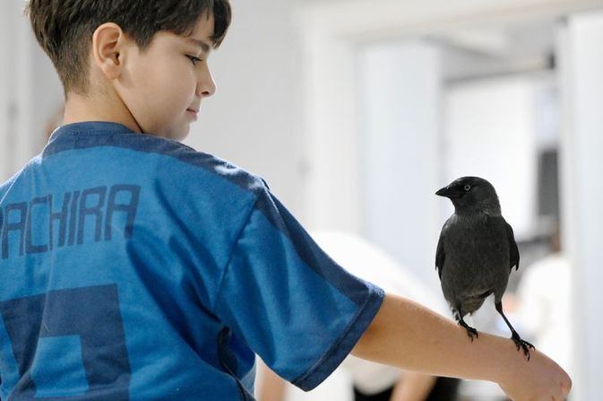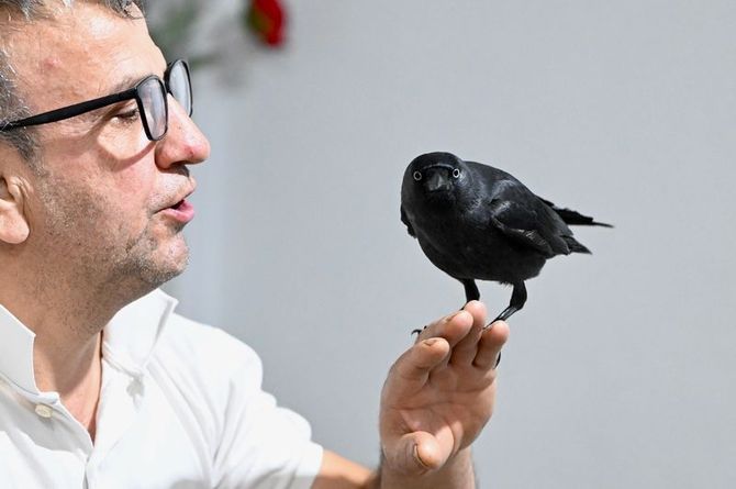 Sahiplendiği karga Kömür en yakın dostu oldu