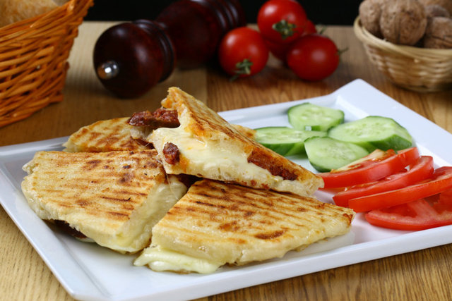 İçine peynirleri, hindi fümeyi, köy biberi, domatesi ve kekiği ilave edip pişirme kağıdı arasında tost makinesine basın.