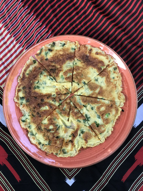 20 santimetrelik yapışmaz bir tavayı ocağa alıp kızdırın ve 1 çay kaşığı zeytinyağını fırçayla yayıp hazırlanan karışımdan bir kepçe tavaya dökün. Arkalı önlü kızarana kadar pişirin. Pişen kaygananızı sıcak servis edebilirsini. Afiyet olsun!