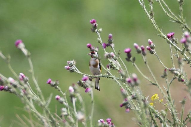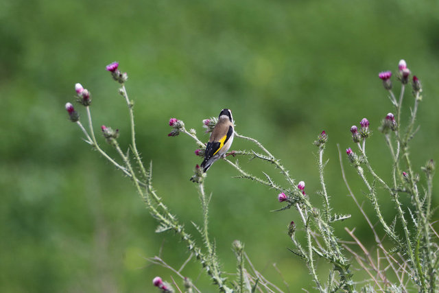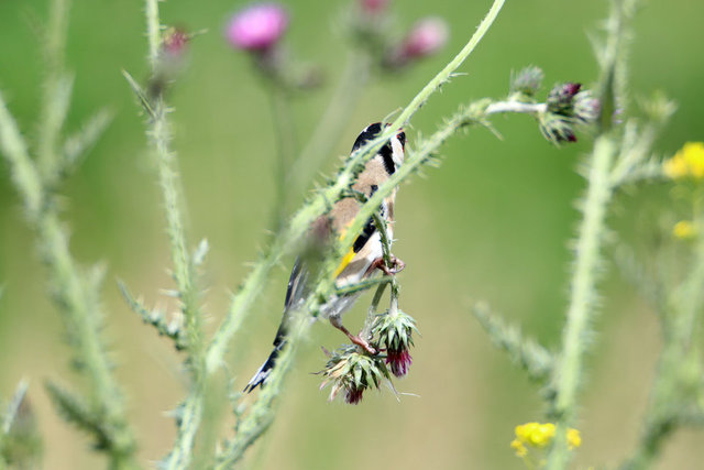 Ağrı Dağı Milli Parkı'nda çalışma yapan AA ekibi, deve dikeninin üstüne konarak beslenen saka kuşlarını görüntüledi.