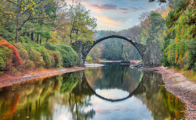 Almanya'nın Gablenz şehrinde bulunan Rakotzbrücke Şeytan Köprüsü, 19. yüzyılda inşa edildi. Işık, suya doğru çarptığında mükemmel bir daire oluşturuyor. Efsanelere göre, köprüyü bizzat şeytan yaptırır çünkü hiçbir ölümlü bu kadar büyüleyici bir yapıyı inşa edemez. Ayrıca, köprüden geçen ilk kişinin ruhunu alabilmesi şartıyla köprüyü inşa ettiği düşünülüyor.