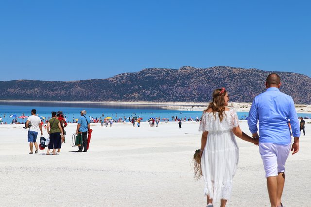 Hem özellikle gelen hem de gittikleri tatil bölgelerinden dönüşte bir günlerini Salda Gölü'ne ayıran tatilciler, turkuaz mavinin ve bembeyaz kumsalın tadını çıkardılar.