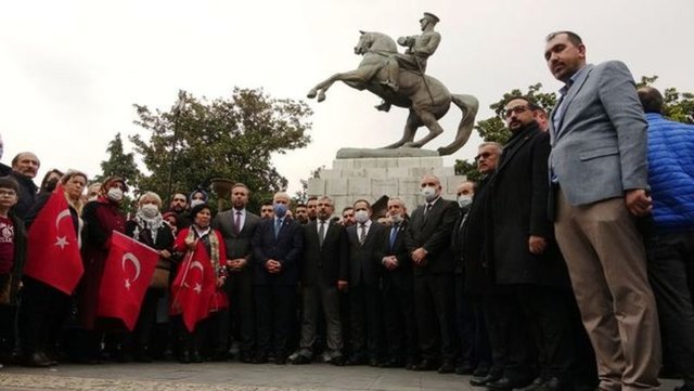 Daha sonra AK Parti, MHP ve BBP Samsun İl başkanlıklarınca Atatürk Anıtı önünde ortak basın açıklaması yapıldı. AK Parti İl Başkanı Ersan Aksu okuduğu metinde "Türkiye Cumhuriyeti'nin kurucusu Gazi Mustafa Kemal Atatürk, hepimizin ortak değeridir. Samsun meşale bir şehirdir. Bu şehri ve benzeri şehirleri provokatif eylemlerle gündeme getirme ve huzur bozma girişimleri milletimizin ferasetiyle boşa çıkacaktır. Bu menfur eylemi şiddetle kınıyoruz" denildi.