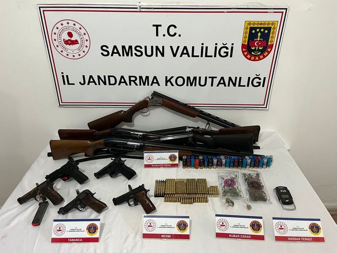 İl Jandarma Komutanlığı ekipleri, Salıpazarı ilçesinde S.K, A.K. ve N.Ş'nin ruhsatsız silah bulundurduğu ve uyuşturucu madde ticareti yaptığı yönündeki istihbarat üzerine çalışma yürüttü.