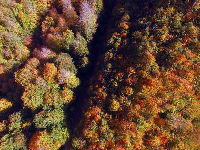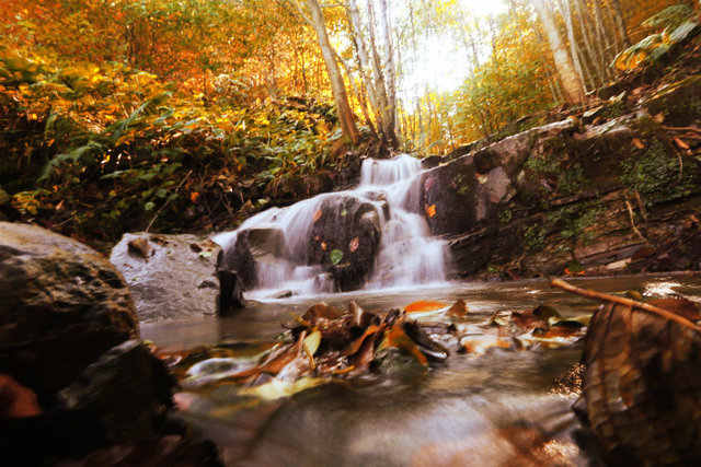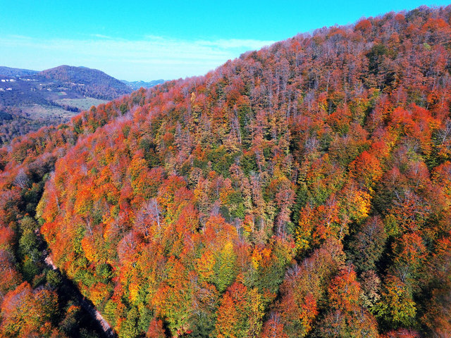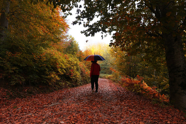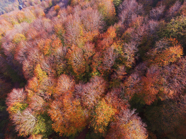 Sonbaharda ağaçlarda oluşan renk cümbüşüyle kartpostallık görüntüler oluşan Nebiyan Dağı'nda devasa gürgen ağaçları gökyüzüne doğru uzayıp giderken, sarararak yere düşen yapraklar ise yüzeyi sapsarı bir örtü gibi kaplıyor.