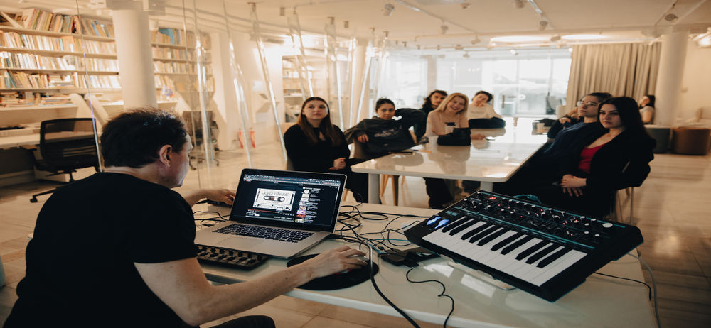 Tan Tunçağ ile Elektronik Müzik ve Gökçe Uygun’la Ses Tasarımı ve Sahne Uygulamaları atölyelerinde elektronik müziğin tarihi, yapısı ve üretim tekniklerinden farklı ses tasarımları ve sahne uygulamaları ele alındı.