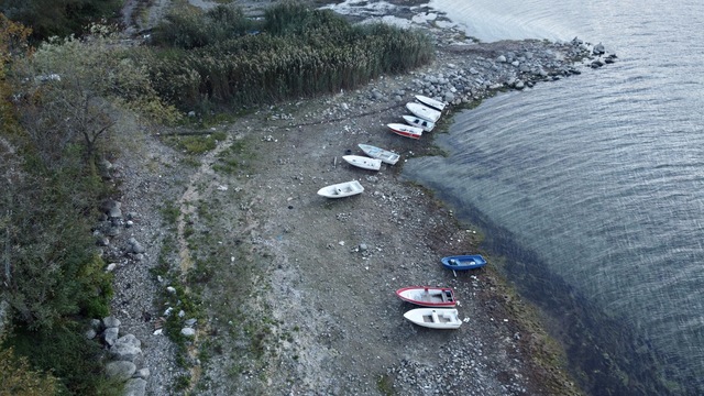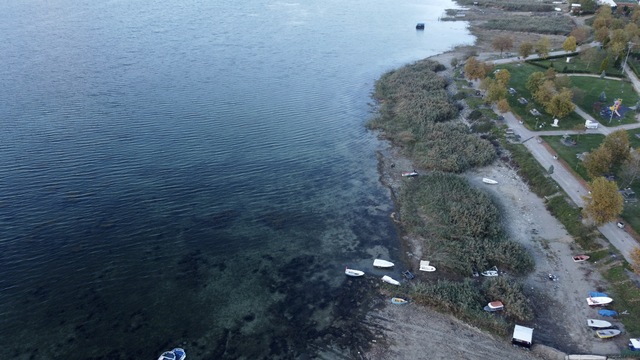 Göl havzası kıyıdan yaklaşık 18 metre çekilirken, kıyıda deniz kabukları görüldü, susuz kalan bazı sazlıklar kuruma riskiyle karşı karşıya kaldı.