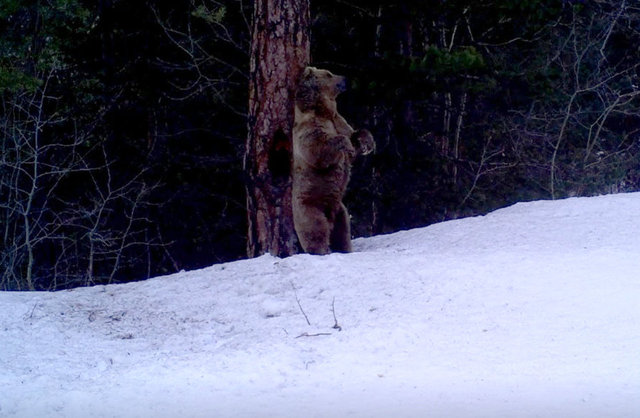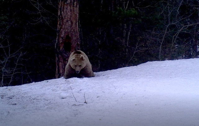Kars'ın Sarıkamış ilçesindeki sarıçam ormanlarında yaşayan bozayı, vaşak, domuz ve kurtların hareketliliği fotokapanlar ile kaydedildi