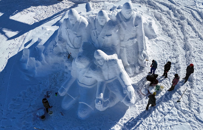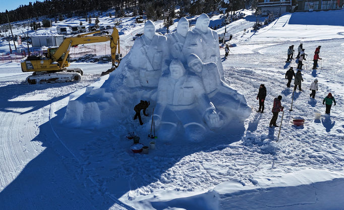Sarıkamış ilçesinde 3-4 Ocak'ta düzenlenecek Sarıkamış Harekatı'nın 111. yılı anma etkinliklerinde sergilenecek kardan heykeller, bu yıl Sarıkamış Kayak Merkezi Oteller Bölgesi ile Kızılçubuk mevkisi olmak üzere iki noktada yapıldı.