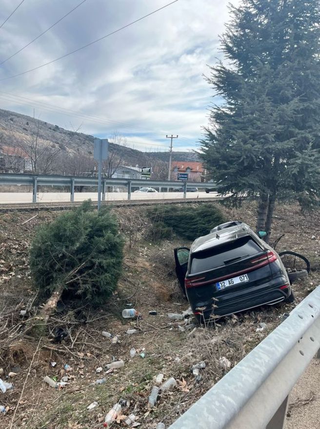 Şarkikaraağaç Belediye Başkanı Ali Göçer’in kullandığı 32 AG 071 plakalı otomobil, Isparta-Eğirdir kara yolu Kuleönü belde kavşağında karşı şeride geçerek şarampole devrildi.