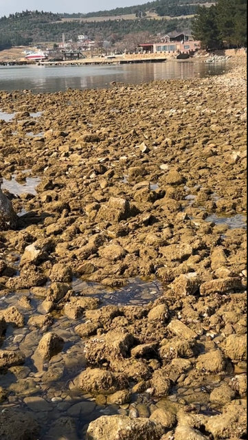 Deniz suyunun yer yer 60-70 metre çekildiği Saros Körfezi'nde oluşan durumu iş insanı Mustafa Altunhan, cep telefonu kamerasıyla görüntüledi. Denizde ciddi anlamda su çekilmesi olduğunu belirten Altunhan, taşlar ve yosunların ortaya çıktığını söyledi.